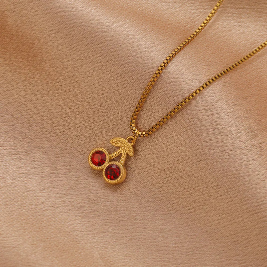 Zora Cherry Pendant Necklace - 18K Gold Plated Elegance
